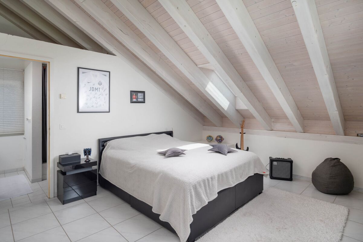 Die Dachwohnung ist einerseits über einen eigenen Aussenzugang und andererseits im Haus über einen internen Zugang erschlossen.